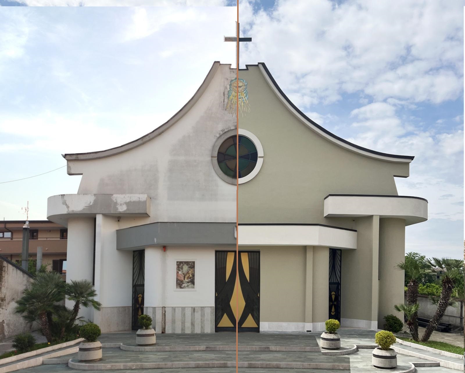 Lavori di Consolidamento e Restauro della chiesa con lavorazioni d’intervento speciale all’impianto illuminotecnico interno aula e vetrate perimetrali motorizzate ed apribile.